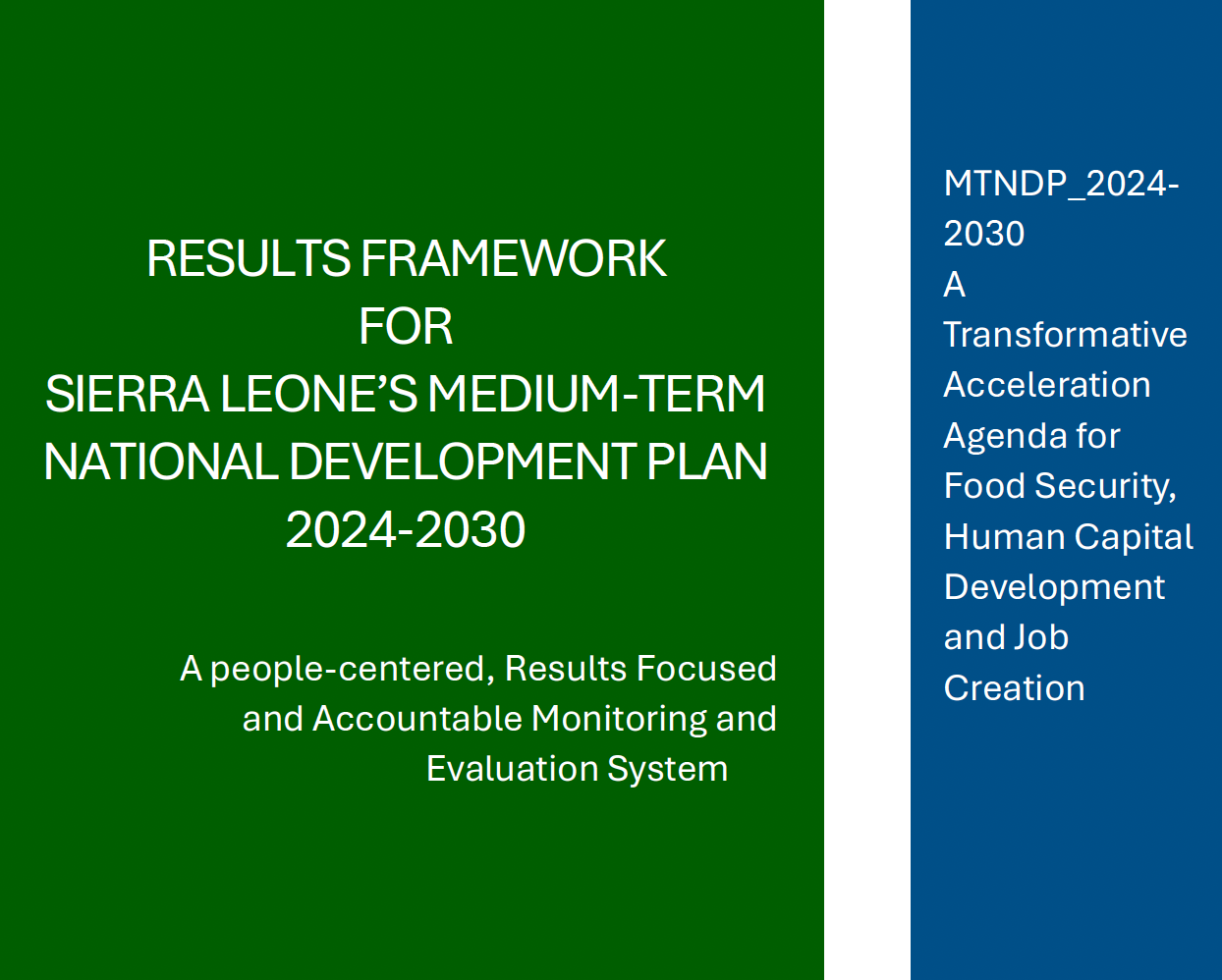 The Medium Term National Development Plan (MTNDP 2024-2030) has been produced and launched in January 2024. It's main content is pivoted on the Big Five Game Changers of Feed Salone, Human Capital Development, Youth Employment Scheme, Infrastructure, Technology and Innovation, and Transforming the Public Service Architecture.