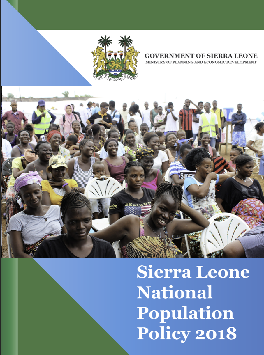 The National Population Policy is designed to improve the quality of life for the people of Sierra Leone by ensuring that the sustainable management of population growth is in line with the country’s economic growth, poverty reduction and available resources. Improved reproductive health, a rapid decline in fertility and the subsequent shift in population age structure will help the country harness the demographic dividend that is needed to accelerate sustainable socio-economic growth and development.